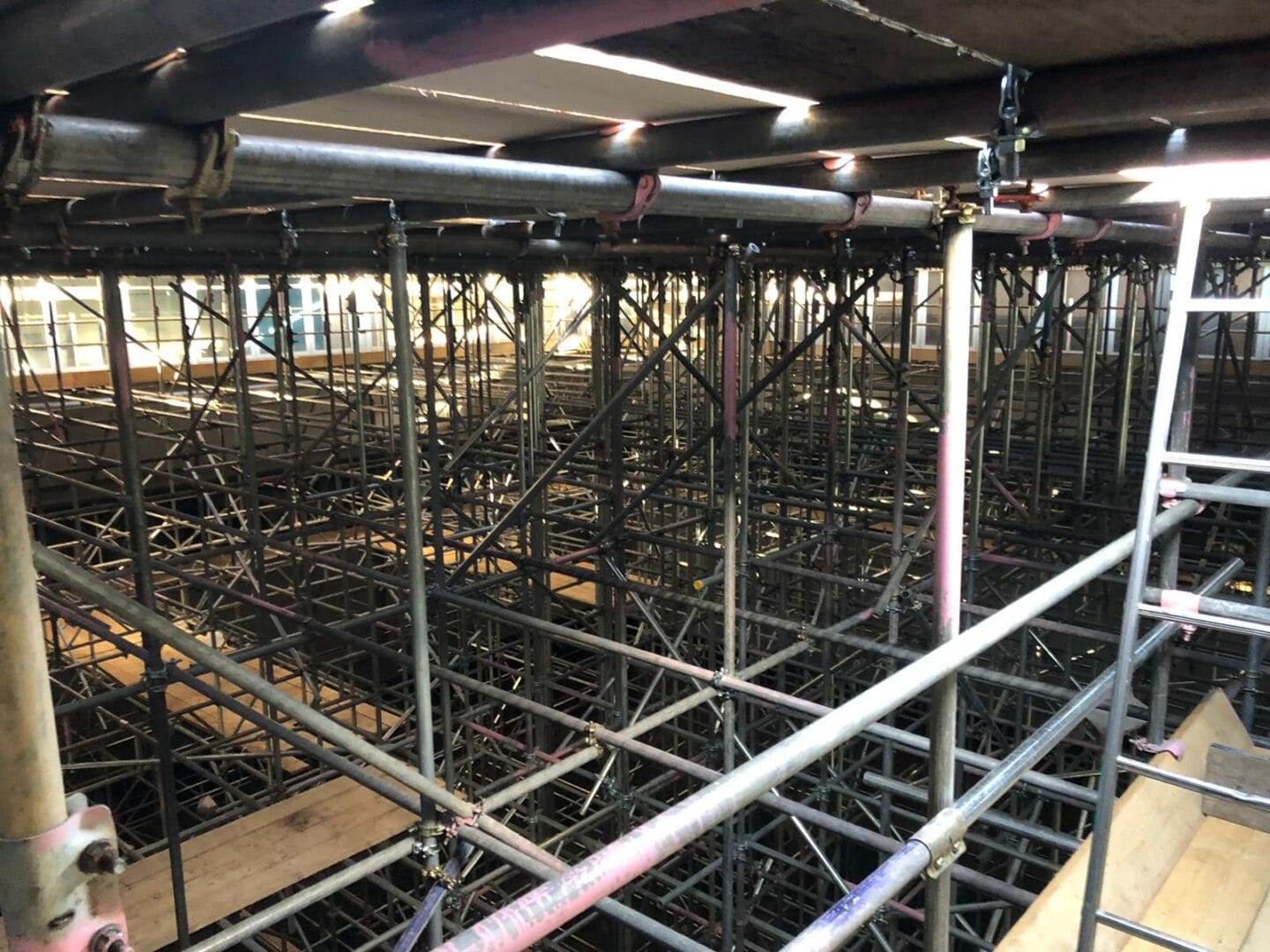 Each building was constructed to a bespoke scaffold design to meet the specific structural and operational requirements of the works. Large crash decks were installed within both courtyard areas to provide additional protection and safe working platforms throughout the project.